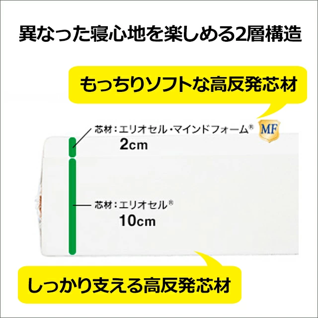 ベースはしっかり、表面はふんわりフィットの2層構造で、痩せ型や年配の方にもやさしい寝心地。