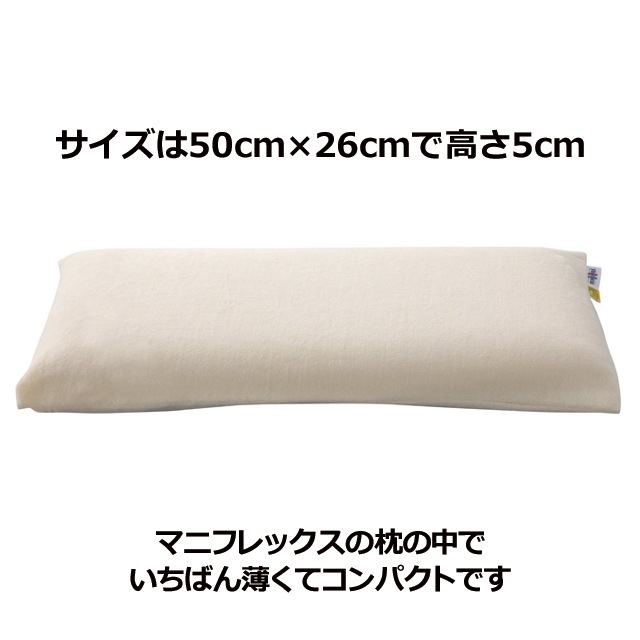 マニフレックス枕の中で、高さ5cmの最も薄い、低めの枕です。