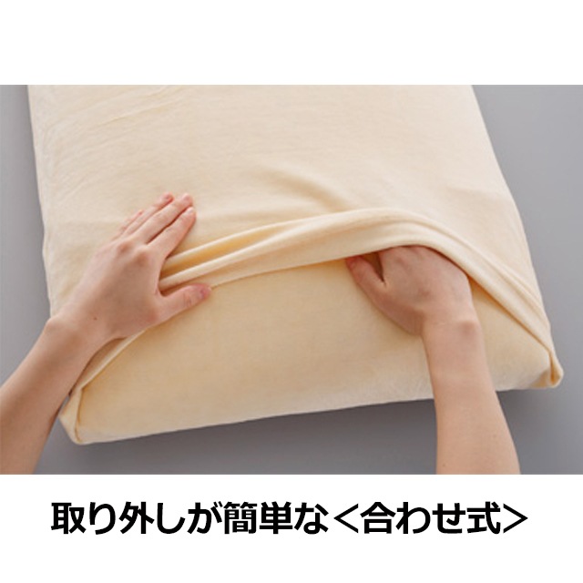 ▲なめらかな手触りのシンカーパイルのベロア生地の専用ピロケースがつきくるくる丸めて旅のおともに。