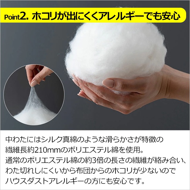 | こんな方に おすすめ | ・洗える肌掛け布団をお探しの方 ・ハウスダストアレルギーの方 ・春夏に使いやすい布団をお探しの方 ・夏の寝冷え予防の布団をお探しの方 ・手軽に洗える布団をお探しの方 ・真綿ふとんのような肌掛け布団をお探しの方 ・布団にカバーをかけるのが面倒な方 ・汗かきのお子さん用に ・軽い布団を必要とする介護寝具用に |