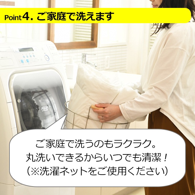 家庭の洗濯機でお手軽に洗えるので、ダニやハウスダストの心配の方にも安心です。