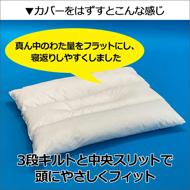 このまくらは、詰めものに防ダニ・抗菌防臭効果のあるポリエステルわたを一部使用。側生地と詰めものでダブルの防ダニ効果があります。もちろん、丸洗いできるのでいつでも清潔に使えます。