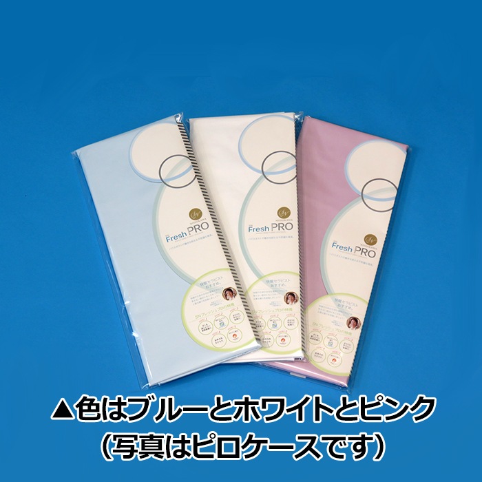 ▲色はブルーとホワイトとピンクです(写真はピロケースです)