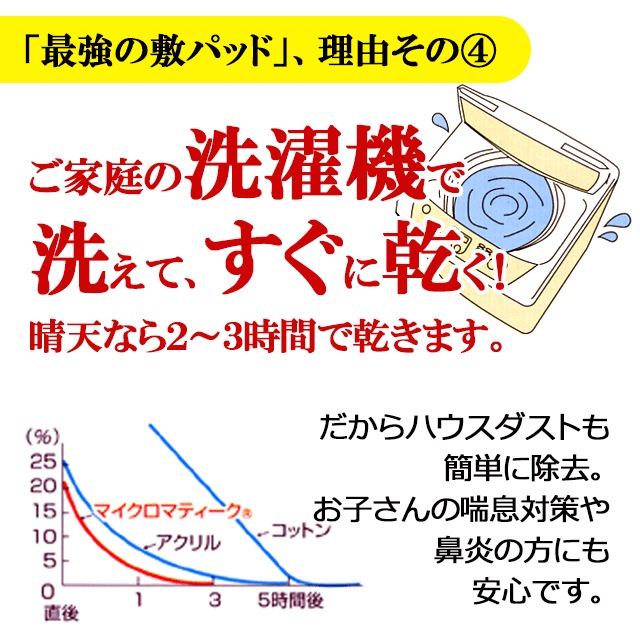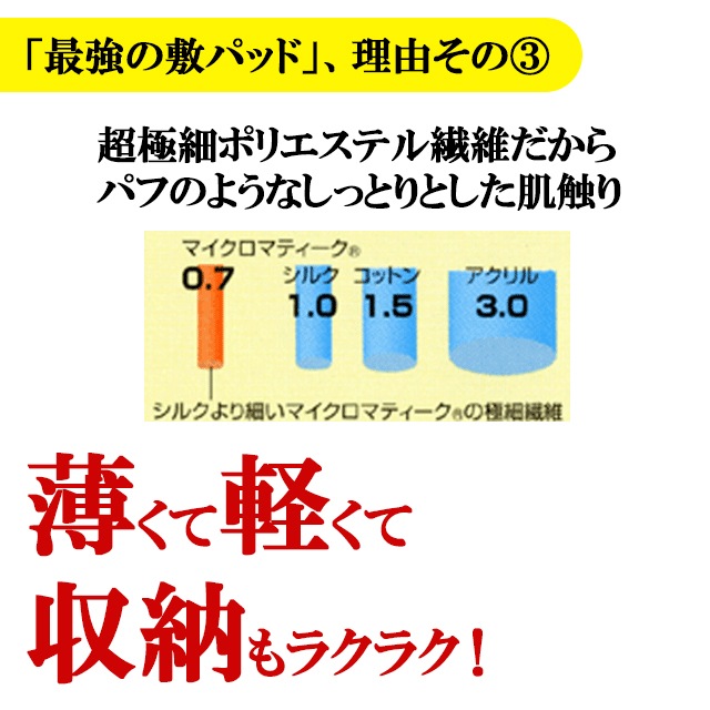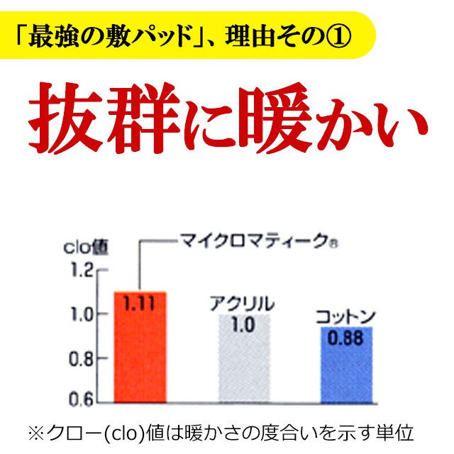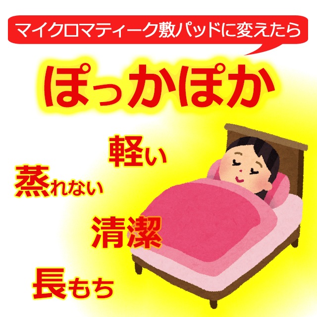 そこで、ふかふかがおすすめしたい敷パットがこれ! マイクロマティーク敷パットは、軽くて、やわらかくて、あたたかい。しかもアレルギーの方にも安心してお使いいただける敷パッドです。