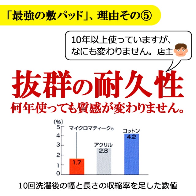 寒い季節はあたたかい敷パットが人気です。でも、よくあるアクリルのボアタイプのパットはあたたかそうですが使ってみると見た目ほどでは・・・と感じる場合が多いようです。肌触りのよさと保温性は必ずしも一致するわけではありません。とくに吸水性や制電制に劣るものだと、夜中に寝汗でひんやりしてしまうということもあります。