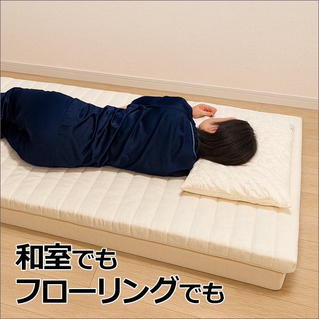 (厚さ5cm以上のものが推奨、低反発マットレスやパットはお薦めできません) |