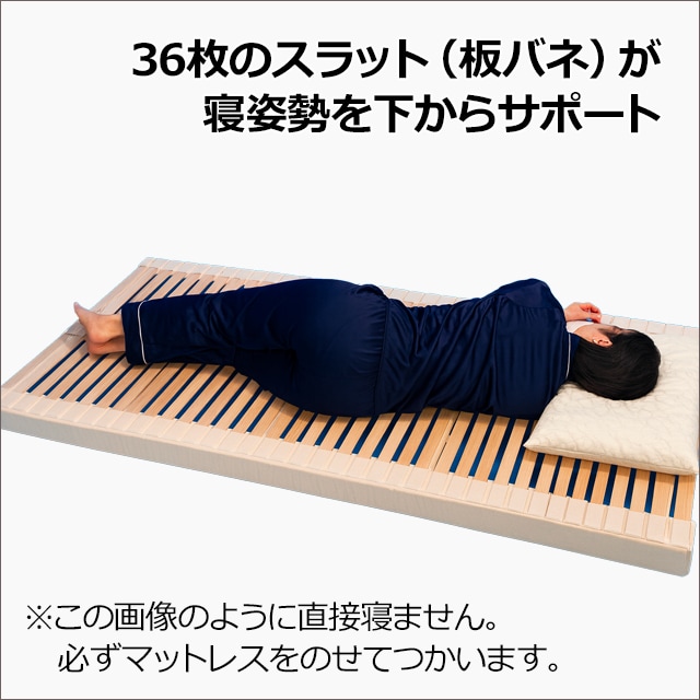 さらに36枚のスラット(板バネ)が一本一本しなやかに独立して可動し、体型や寝