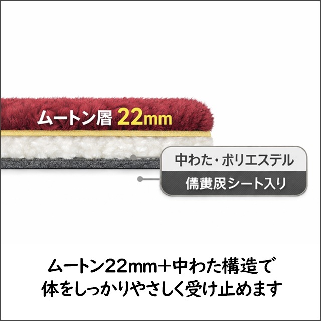 わたは沈み込みが一点に集中しやすいのに対し、 ムートンは密集した毛が“面”で体を受け止めます。