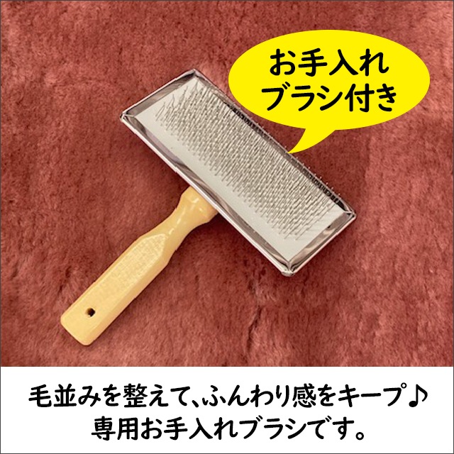 ムートンは天然素材のため、日々のご使用で毛並みが寝てしまうことがあります。 本商品には、毛並みを整える専用お手入れブラシをお付けしています。